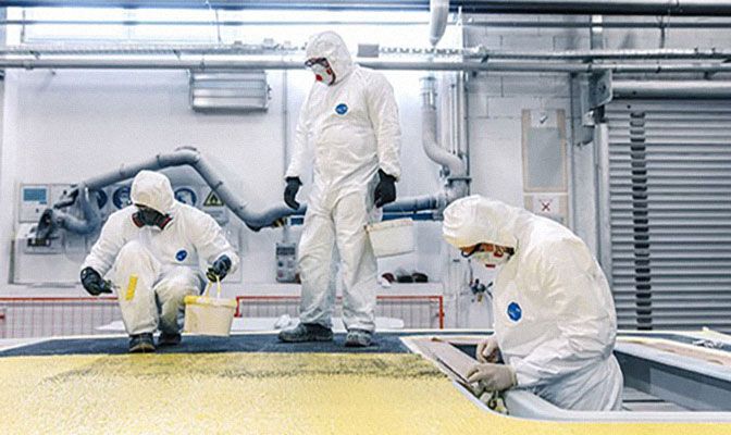 During the production of composites, some of the workers are exposed to resin components, to components in sprays used for dry fibre lay-up or to glass fibre dust produced by finishing work. All major ingredients of composite products are irritants as well as occupational allergens. At the same time, skin exposure to glass fibres may cause irritation. Therefore, exposed parts of workers’ bodies need to be protected from irritation and allergy triggers. “Safety at work is our number one priority,” says Igor Zupan, director of R&D in the wind power division at ELAN.