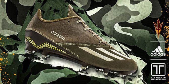 In 2002, Pat Tillman, an Arizona State University alumni and safety for the Arizona Cardinals, proudly put his professional football career on hold to enlist in the U.S. Army with his brother. In April 2004, Pat lost his life while serving with the 75th Ranger Regiment in eastern Afghanistan. Paying homage to Pat and the Pat Tillman Foundation, the PT-42 badge logo is prominently placed on the top of the tongue of these special edition cleats. Additional detailing includes a camouflage sock liner with gold adidas Football logo, representing the gold outline of the U.S Army Rangers patch and U.S. flag patch.